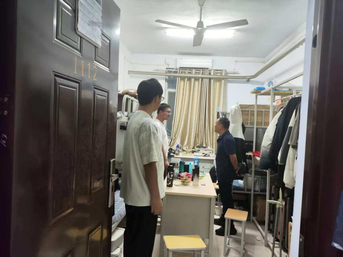 走访过程中,陈洪涛详细询问了男生宿舍同学们的学习规划、生活习惯和宿舍卫生情况,叮嘱大家要注意劳逸结合,保持良好作息,打造整洁舒适的宿舍环境。范亚桢则在女生宿舍关心同学们的返校适应情况和心理状态,提醒大家在学习和生活中遇到困难时要积极寻求帮助,并鼓励同学们保持团结互助的良好氛围。与此同时,学院对宿舍用电安全、防火防患等问题进行了检查,及时排查并指出了存在的隐患。