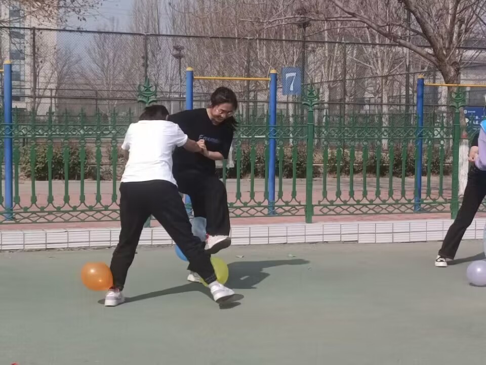阳春三月,草长莺飞,花儿含笑,又是一年芳草绿,春风十里桃花红。在这春意盎然的季节,三月七日下午14:00,趣味运动会在南校区操场正式开始。活动以一段动感十足、活力四射的舞蹈开场,将现场气氛点燃,动感的乐曲,炫酷的舞蹈动作十分抓人眼球,展现出我院女生青春活力的一面。活动设置了四个游戏环节,分别为“跳绳”、“水上乒乓”、“气球砰砰砰”、“袋鼠跳”,完成四个小游戏后,便可以前往套圈区域,获得精美小礼品。陈洪涛和范亚桢也参与了活动的游戏环节,和我院同学一同在欢声笑语中庆祝节日,拉近了与同学们之间的距离。此次活动得到了同学们的热烈反响,纷纷表示在活动感受到了学院对学生的关心和爱护,丰富了课余生活,在活动中不仅收获了快乐也锻炼了身体,并希望学院多举办类似的活动。