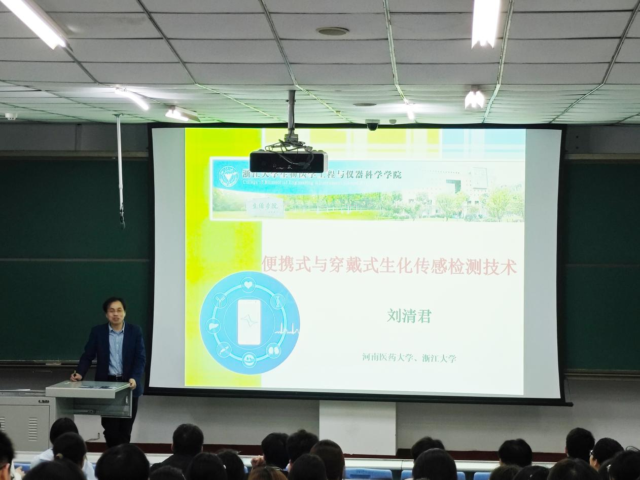 为进一步引导新生坚定理想信念,做好学业规划,涵养学术道德,砥砺意志品格。10月16日晚,我院特聘教授刘清君以“便携式与穿戴式生化传感检测技术”为题在博学楼3104教室为弘毅书院2025级生物医学工程、医学信息工程、智能影像工程学生带来了一场专业启蒙教育,我院党政办公室主任常金龙、团委书记陈洪涛,弘毅书院辅导员赵茜阳参加本次会议。