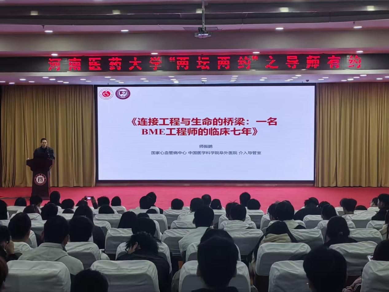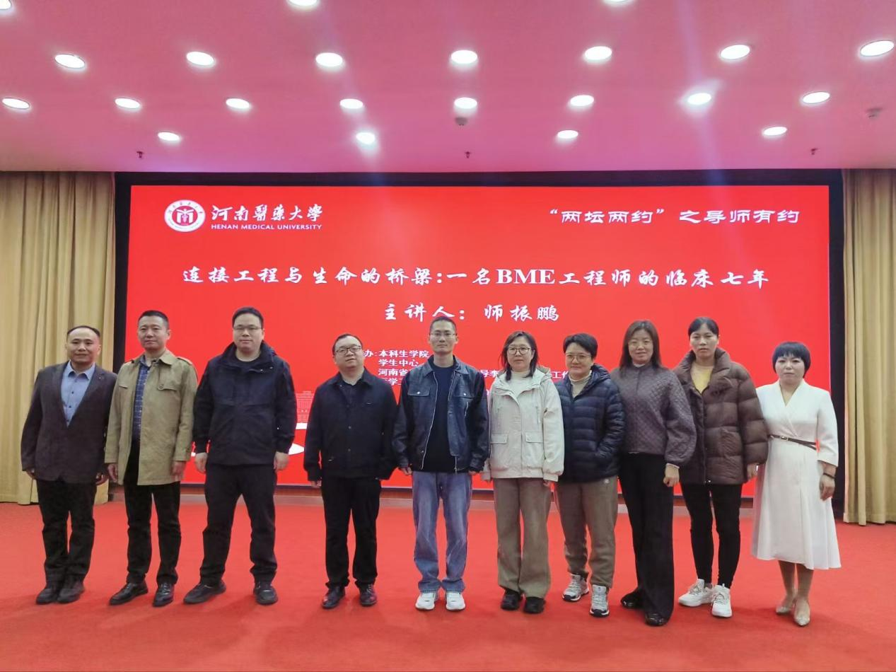 为帮助学生明确职业规划、增强专业信心,10月26日,由本科生学院、学生中心联合主办,医学工程学院承办的“两坛两约”之导师有约活动在博学楼第一报告厅成功举办,本次讲座特邀我校2014届毕业生、中国医学科学院阜外医院工程师师振鹏讲授。校党委委员、副校长林俊堂,我院党政领导班子出席本次活动,学生中心代表、团委书记、辅导员、教师代表和各年级学生代表参加。
