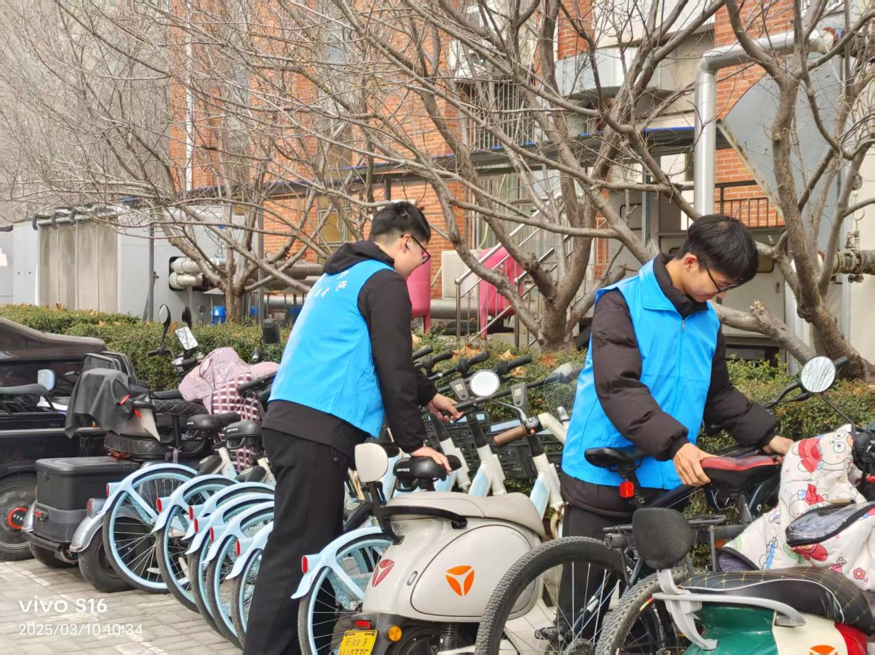 活动当天,志愿者们身着统一志愿马甲,主动引导师生将电动车、自行车停放在指定区域,避免占道或随意摆放,并对未按规范停放的车辆进行整理。活动过程中,志愿者们热情耐心的态度赢得了师生广泛认可。原本杂乱的停车区域变得井然有序,校园主干道通行效率显著提升。