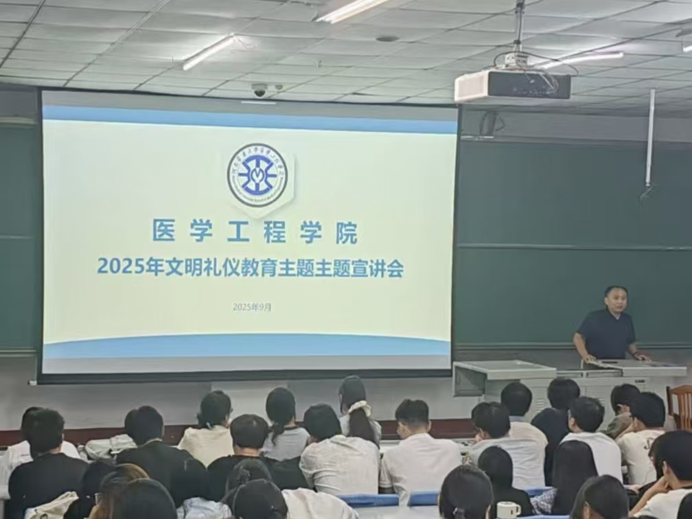 为进一步培育和践行社会主义核心价值观,全面提升学生的文明素养,营造文明、和谐的校园氛围,医学工程学院于9月16日下午在3101教室开展了文明礼仪教育主题宣讲会。团委书记陈洪涛、辅导员范亚桢出席会议,我院全体在校学生参会,会议由范亚桢主持。