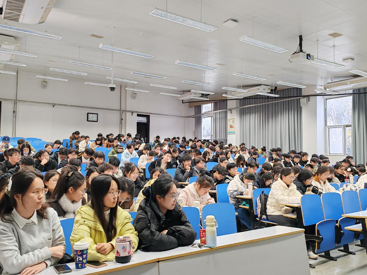 宣讲会聚焦不同年级学生需求,范亚桢为大三同学清晰梳理了“考研、考公考编、直接就业”三大发展路径,同时提醒同学们可通过学院公众号“职引未来”专栏获取最新就业资讯;陈洪涛针对正处于冲刺阶段的大四同学,为其加油鼓劲,并现场发放了学弟学妹们精心准备的考研“加油包”。最后,大三同学大四学长学姐的考研征程送上了真挚祝福,传递了温暖的学院情谊。
