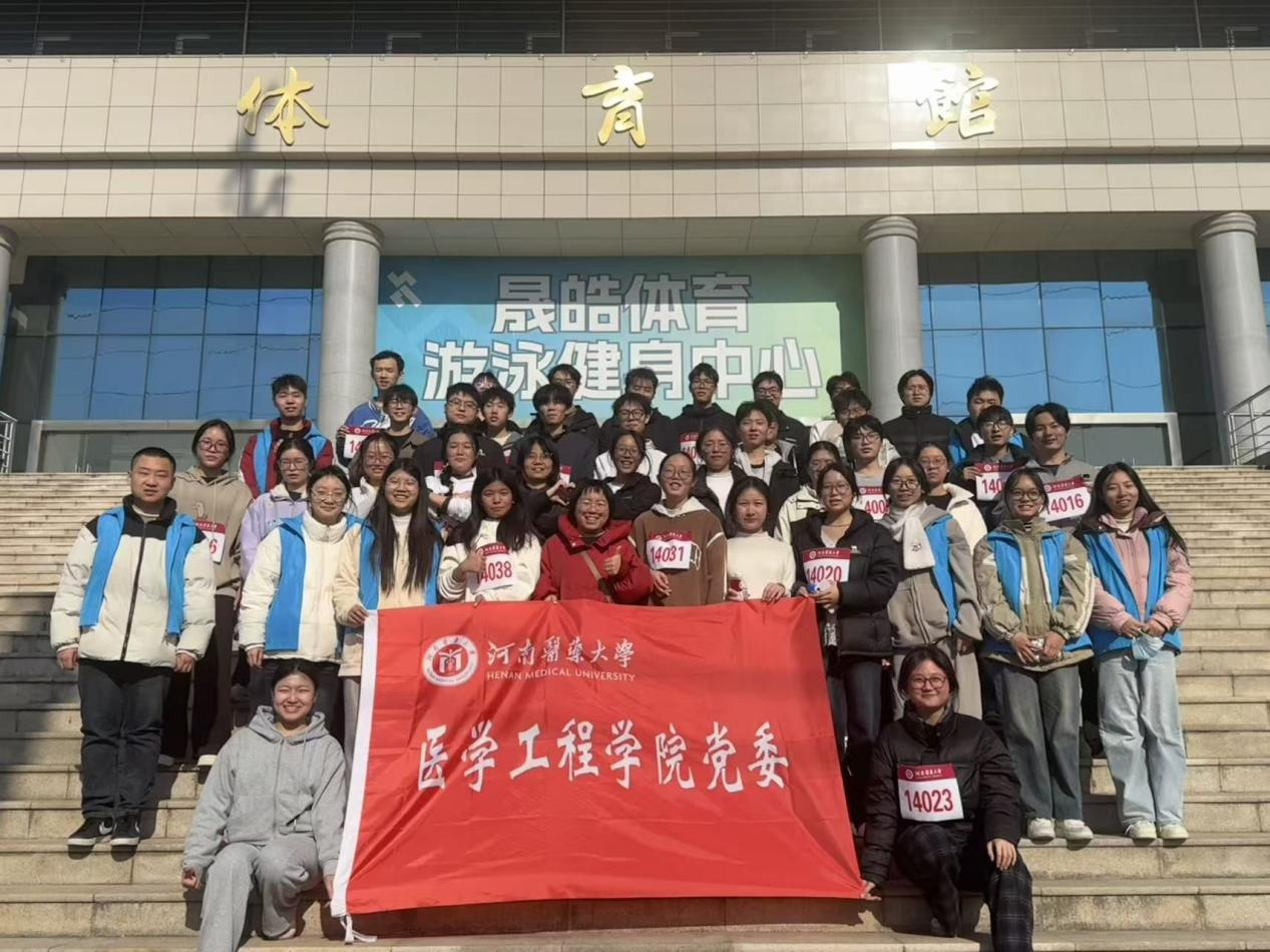 比赛当天,寒风猎猎,却挡不住医学工程学院师生的热情。大家佩戴统一标识牌,提前半小时完成集结,在工作人员引领下有序热身、相互加油。随着发令枪响,子组率先出发,女子组紧随其后。他们的步伐或许不如专业运动员矫健,但每一步都踏得坚定有力。赛道上,同学们相互鼓励、彼此照应,形成了一道流动的风景线。有的同学体力不支时,身旁即刻会有同伴放缓脚步给予支持;有的同学调整呼吸节奏,周围便有人默契配合。凛冽空气中,同学们步伐坚定、呼吸均匀,每一次摆臂都写满青春的倔强;每一滴汗水都在阳光下折射出拼搏的光芒。