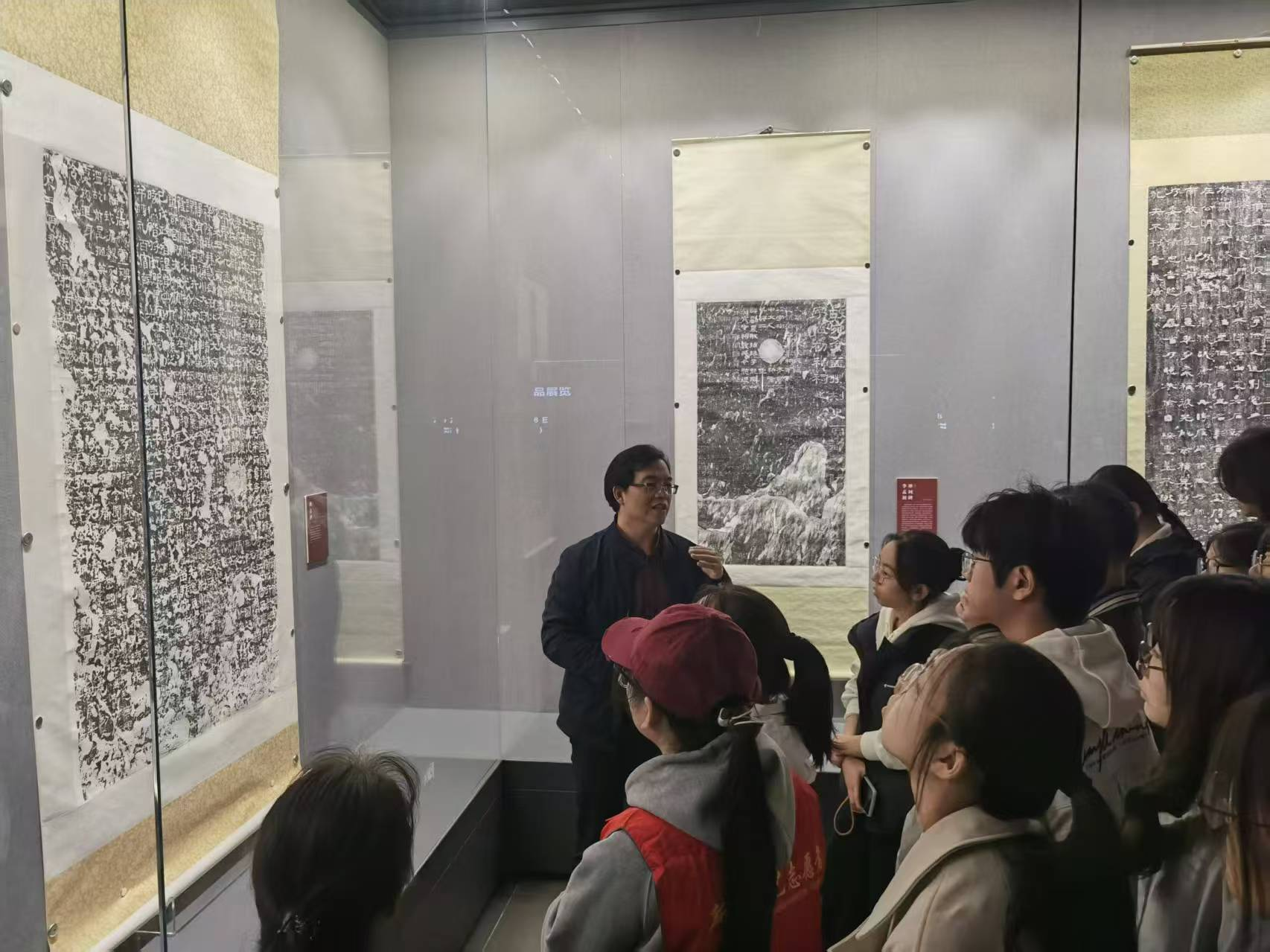 在参观过程中,同学们表现出极高的学习热情。他们驻足于一幅幅拓片前,感受“乙瑛碑”的端庄,“礼器碑”的瘦硬,“史晨碑”的古厚┈