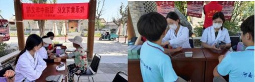 在健康服务与乡村振兴实践中,实践团将爱国情怀转化为服务乡村的实际行动,从健康普惠与产业赋能两方面入手,为乡村发展注入活力。暑期联合当地医疗机构开展义诊,为群众提供血压测量、血糖检测、常见病诊断等服务,为老年人、慢性病患者制定个性化健康指导方案,发放健康宣传手册800余份,累计服务群众800余人;同时开展急救培训课程,通过理论讲解与模拟操作,传授心肺复苏、创伤止血等急救知识;此外,实践团还前往乡村养老院开展“尊老爱老”文艺演出,表演红色歌曲联唱、革命题材小品等节目,与老人亲切交谈、倾听时代记忆,并与当地建立校地长效联动机制,为乡村持续发展提供支持。