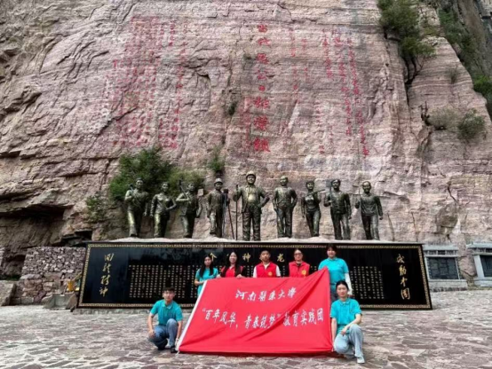 在红色精神赋能方面,实践团将红旗渠精神作为红色精神赋能的核心,通过实地研学、宣讲传播与成果总结,推动精神传承与时代价值转化。实践团前往红旗渠纪念馆,与优秀党员、人民子弟兵共同参观红旗渠党员见证墙,了解党员赤诚初心;实地考察红旗渠分水闸,感受“自力更生、艰苦创业”的修渠壮举;在纪念馆内系统学习林县人民修建红旗渠的艰辛历程,观看场景复原,深刻体会红旗渠精神内涵;同时,实践团组织成员重走红旗渠修渠路,体验悬崖凿石、徒手搬运等劳动场景;走访红旗渠沿线群众,采访参与修渠的老建设者,并开展红旗渠精神宣讲进社区、进校园活动。
