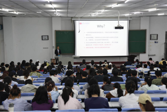 当天下午的学术讲座在博学楼D3教室举行,由穆学涛校友主讲,题目为《什么样的科研论文容易发表(审稿人角度)》。作为在科研领域大有建树的学者,穆学涛从期刊审稿人的独特视角出发,深入剖析了高水平科研论文的核心要素。他围绕选题创新性、论文各部分写作要点、数据图表呈现以及论文写作规范等关键环节,结合具体实例,为师生们揭示了科研论文从撰写到发表过程中的“通关密码”。讲座内容详实、见解深刻,既有理论高度又具实践指导意义,极大地开阔了师生们的学术视野,激发了大家的科研热情。